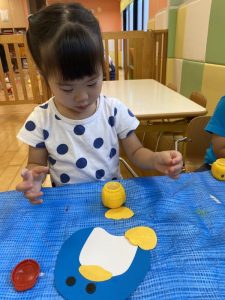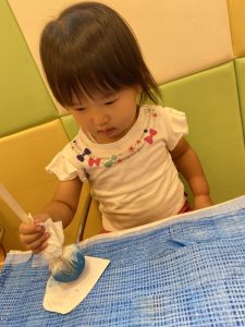 1歳児クラスのシロップはタンポを使って表現しました。