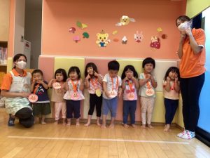 たくさんがんばったみんなに先生たちからメダルのプレゼントが