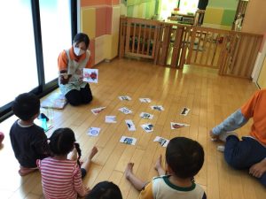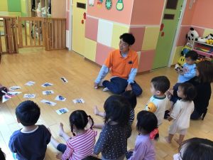 亀戸園では、「Hello song」を歌ってから、今日の天気→フィーリングカード