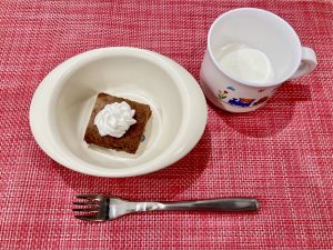 おやつのココアパンケーキホイップ添えは、特別な誕生日メニューです。