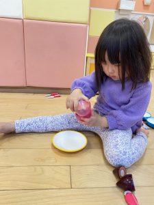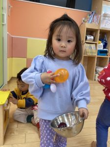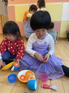 みんか大好きなままごと遊びをしました。