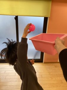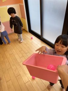 「玉入れ」は、投げ入れることがまだ難しい子が多いので、
