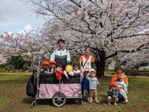 また、この園のある亀戸五丁目周辺をとっても目立つオレンジ色のユニフォーム(笑)で元気いっぱいの子どもたちとほぼ毎日お散歩しておりますので、