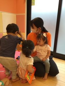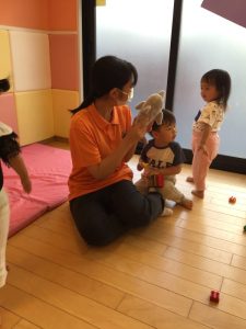 お姉さん先生と一緒に、身の回りのこともがんばります。