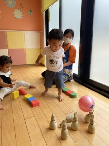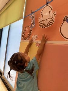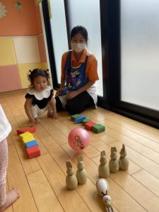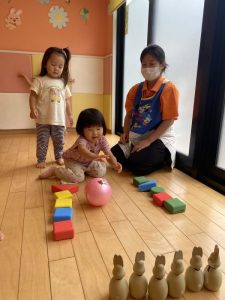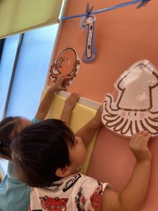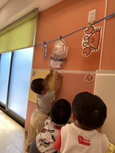 時々、保育者が紐を少し下げて取りやすくしました☺️