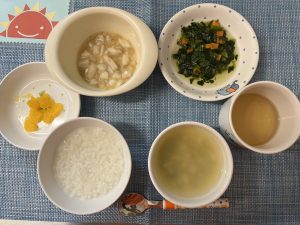 今日は、今が旬のほうれん草を使用したお浸しでした。旬のほうれん草は甘さもあり栄養価も高くなります。みんなたくさん食べることができました♪