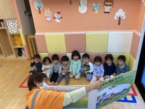 今週は、「せんろはつづくどこまでつづく」の大型絵本です。