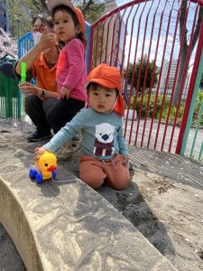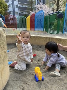 お砂場で遊んだり、鳩や電車を見つけて手を振っています👋