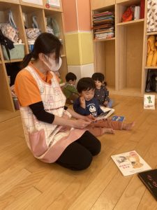 こちらは午睡前の読み聞かせの様子です。