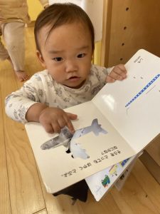 保育者のところに持って来て一緒に見る時間も大切にしています。