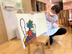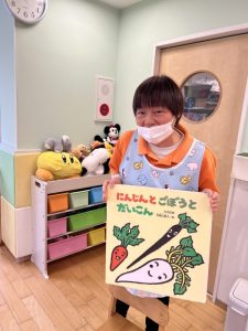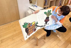 今週は、「にんじんとごぼうとだいこん」の大型絵本です。