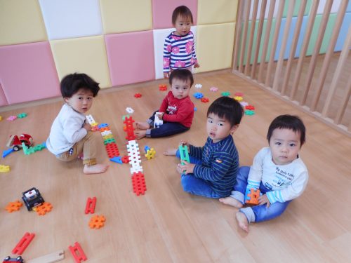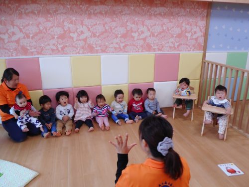 もも組(0歳児)6名・いちご組(1歳児)6名・りんご組(6名)の計18名で