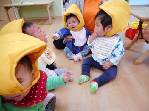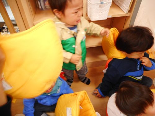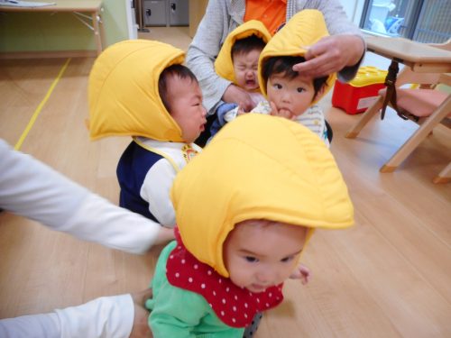 保育士から「地震です。先生のお話を聞いて下さいね」と声かけがあります。