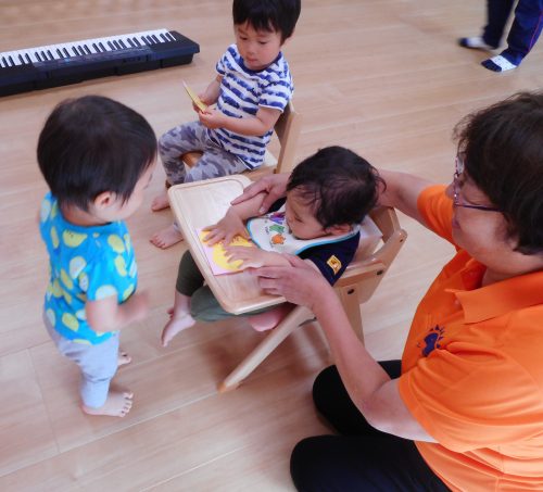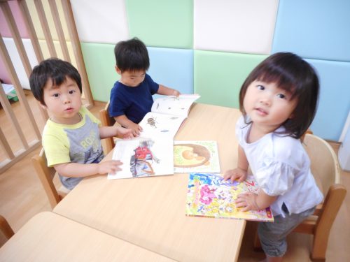 お昼寝の後、おやつまでの間に絵本を読んでいる