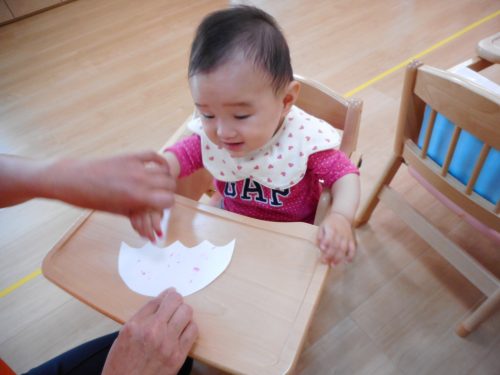・立っているお友だちから、カードをもらいました。