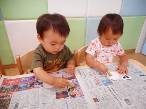 クレヨンもらうと、何か楽しくなっちゃうんだ。