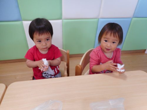 お部屋の中で遊んだり、少しの晴れ間を見つけて