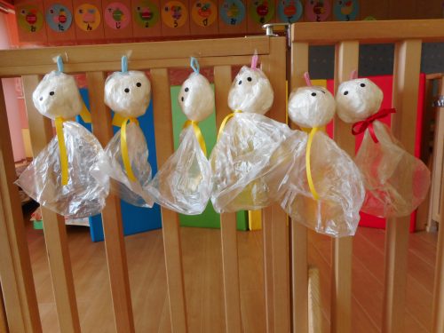雨雲が吹き飛ぶようにてるてる坊主を作りました。
