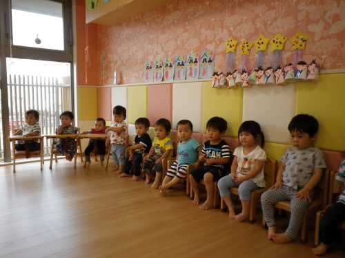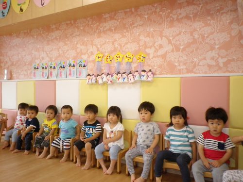 もも組はみんなチョコンと座って