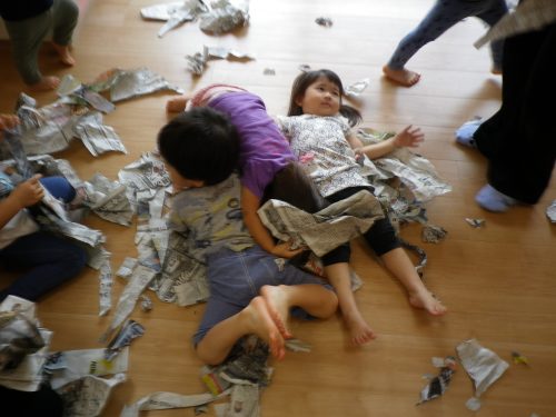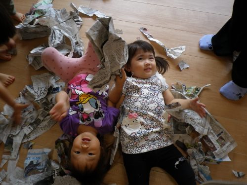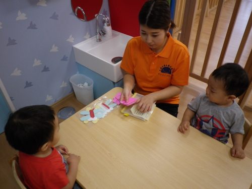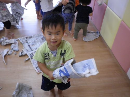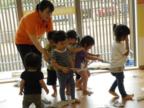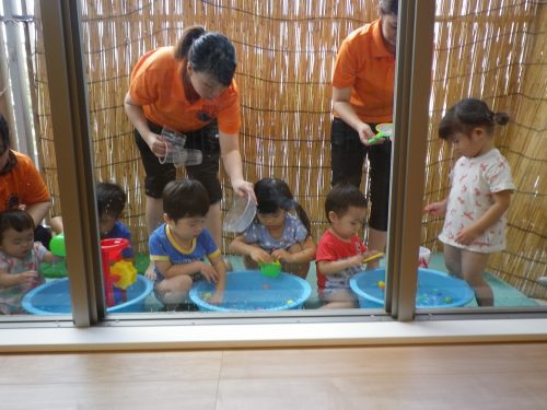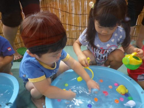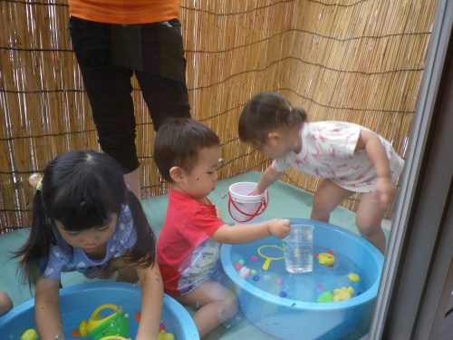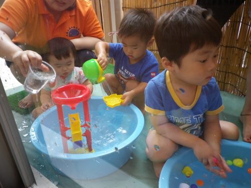 *奏の杜園の水遊びは、水遊び用の紙おむつをつけて