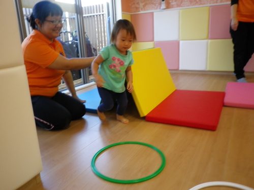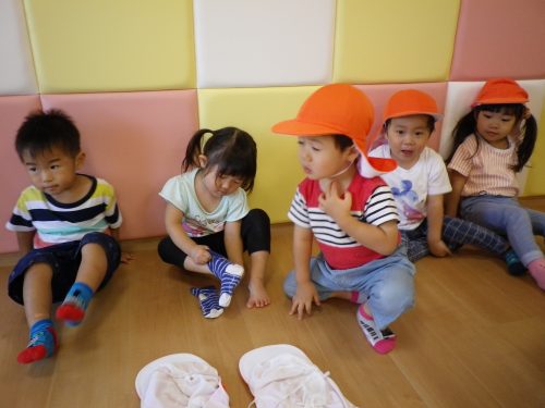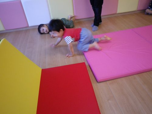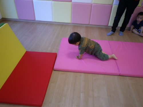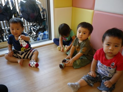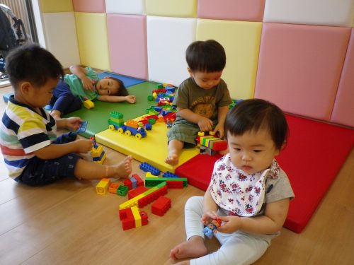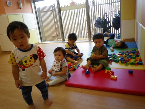 ブロック遊びをしながら、お友だちの登園を待ちます。