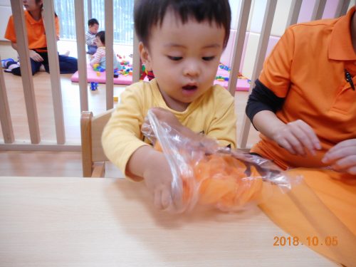 ビニール袋を使った製作です。