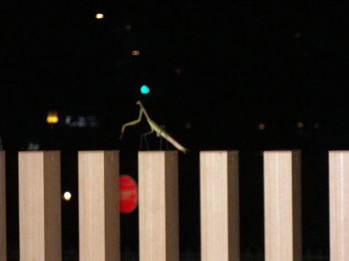なんと、目の前にポーズをとった「カマキリ」が![]()