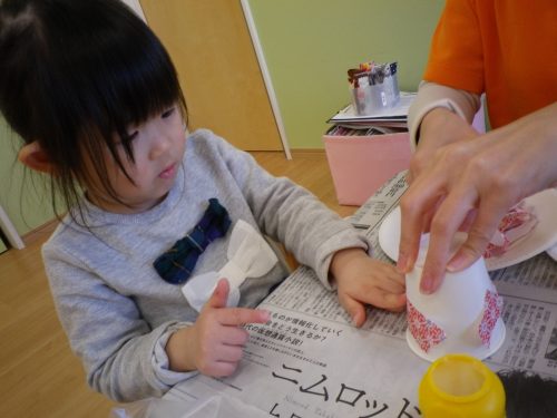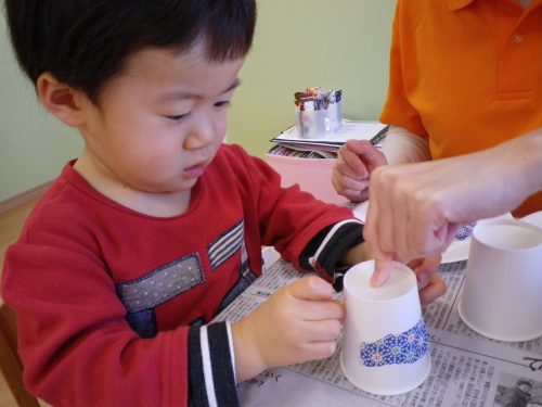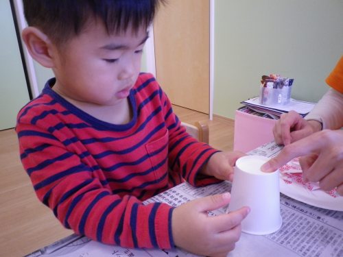 紙コップにペタン![]()