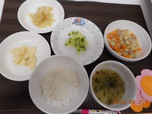 <離乳食> *軟飯 *みそ汁 *茹でカボチャ *五目豆 <幼児食> *ご飯 *みそ汁 ...
