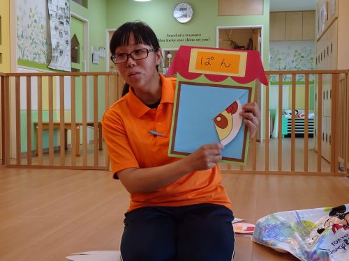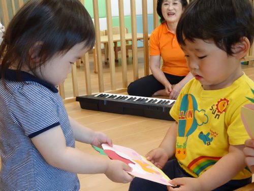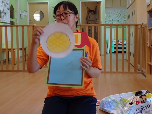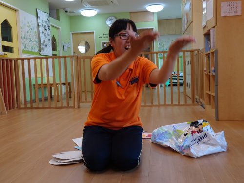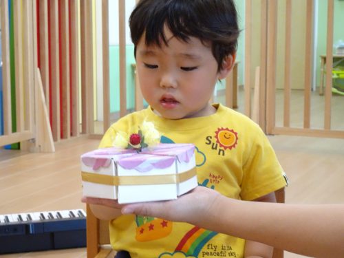 「たん、たん、たん、たん、たんじょうび~?」のお歌でお祝いした後は、保育士からの出し物です!