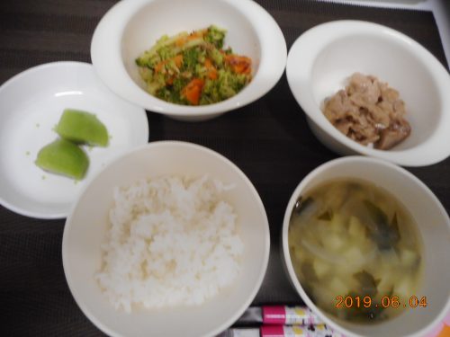 2019.06.04|給食ピックアップ 6月4日(火)お給食 <乳児食> *軟飯 *みそ汁 *ツナの甘酢かけ *おかか和え <幼児食> *ご飯 *みそ汁 *豚肉の甘酢炒め *おかか和え *キウイフルーツ 前へ 次へ