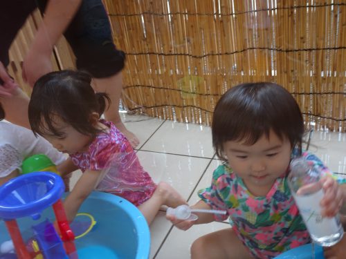 今週は鼻水や咳、下痢などで水遊びできない子もたくさんいたので