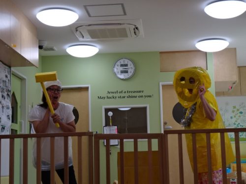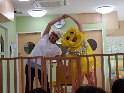 みんな大好きで「こんばんは」と保育者が言うと、おじぎをしながら「こんばんは」と言ってくれます。