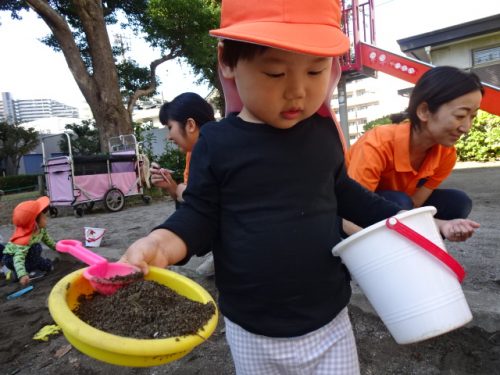 「朝は寒いけど、昼間は暖かいし、何を着て行こう?」とお悩みでしたら、その都度保育者にお声掛け下さいね(^^)