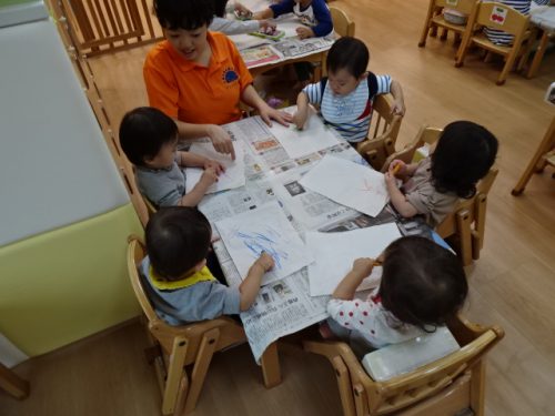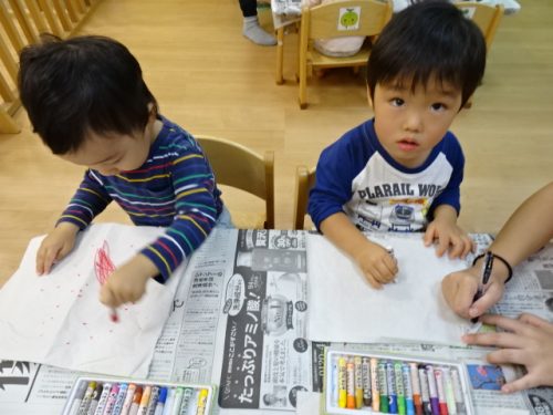 今週は雨の日にはお部屋でお絵描きをしました![]()