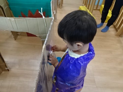 絵本の中で、魔法使いになっているペネロペがいたので、みんなもマントを被りました?