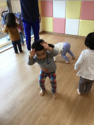 「ぱわわっぷ体操」やピアノの音に合わせて「うさぎ」や「馬」、「へび」などになりきりました。