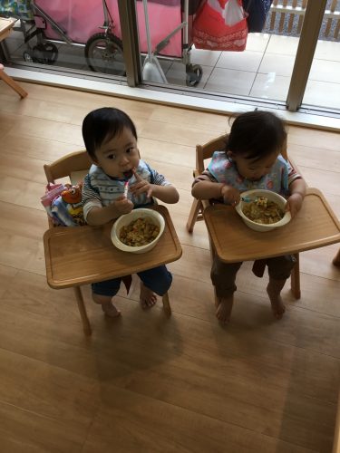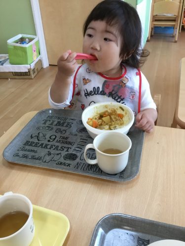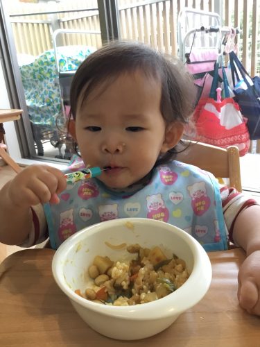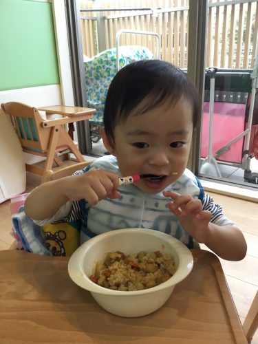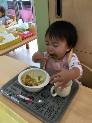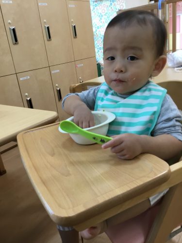 スプーンを使って自分で食べられるようになってきました(^^)