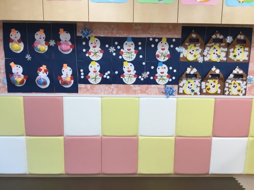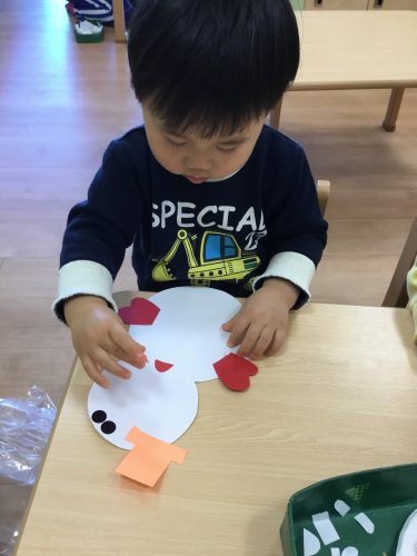 今月は暖かい日が多いですが、2月ということで⛄の製作を各クラスで行ないました?