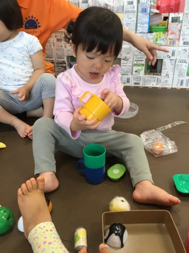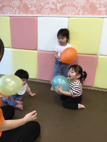 好きな色を選んで「ぽ~んっ」と言いながら投げては取ってを繰り返し楽しんでいました?