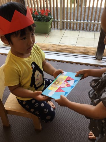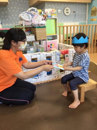 お友だちや保育者から誕生カードをもらったり、お誕生日のお歌をうたってもらいました(^^)