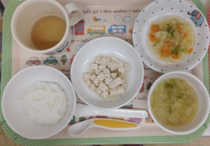 ※お野菜が苦手な子もいますが、今日もキャベツのごま和えを頑張って食べていました。少しずつ食べられるようになれたら良いと思います。