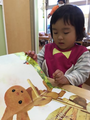 自分で絵本を見る時には「大事にしようね!」ということを伝えると
