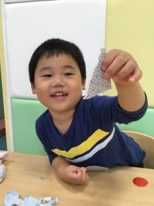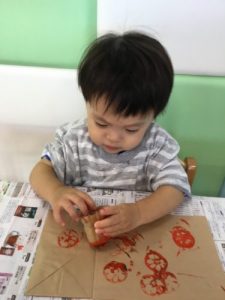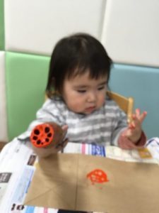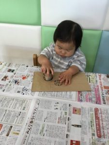 なんだろ~と思いながらも、穴の開いたスタンプを見て興味津々で