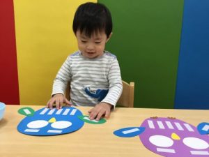 また、絵合わせカードではたくさんの乗り物のカードを手に持って