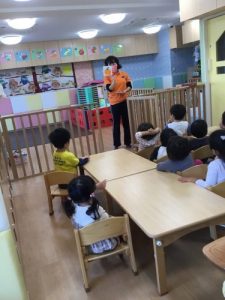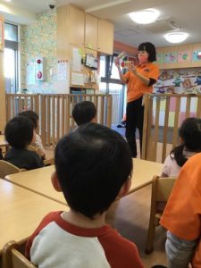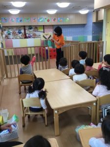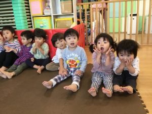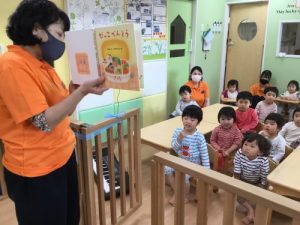 絵本の読み聞かせでは、どんな内容のお話しなのかな?と興味津々に聞いています