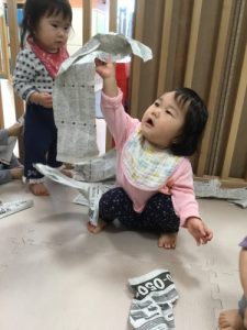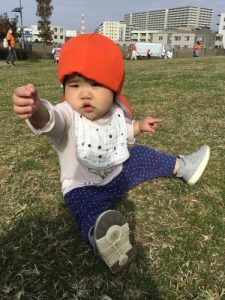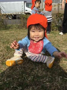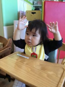 真似っこも大好きなので、保育者の真似をして「お~い!」と元気に言っているところです