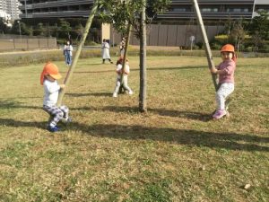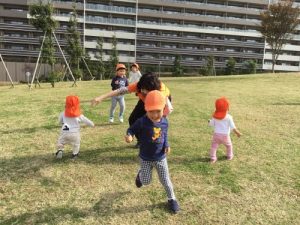 公園では、たくさんかけっこしたり、葉っぱを拾ったりして楽しんでいます?