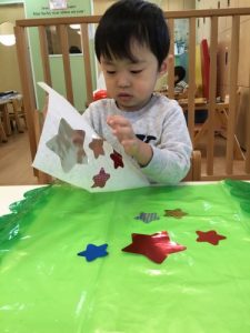 ?もも組さんも星形の紙をペタっと貼りました?