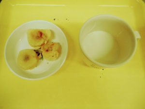 ※おやつのバナナフリッターは、小さく切ったバナナに天ぷらの衣をつけて揚げます。ご家庭でも簡単にできますのでおすすめです。